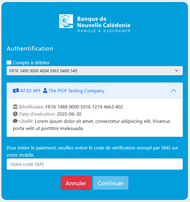 Welcome to the Banque de Nouvelle Calédonie Developer Portal. This portal will allow you to access the Banque de Nouvelle Calédonie API documentation and to test your app against the Sandbox environment before using it with real customer data.